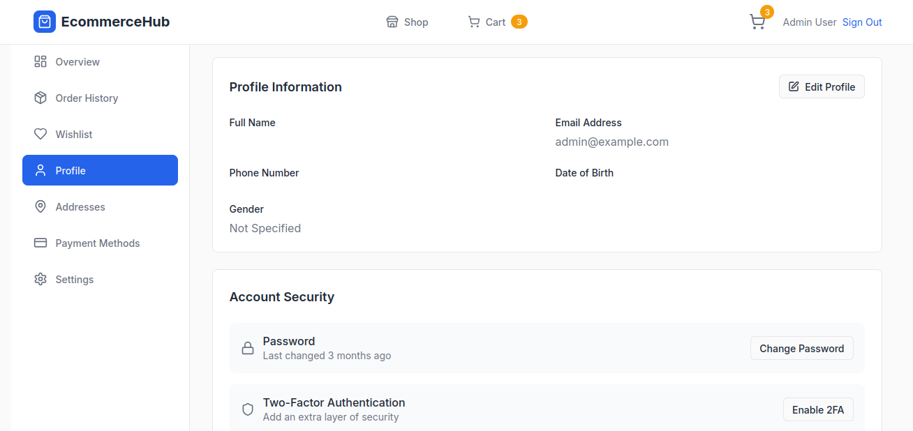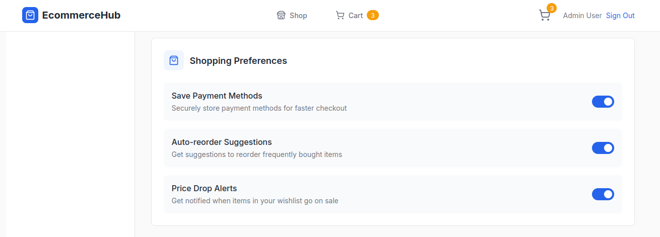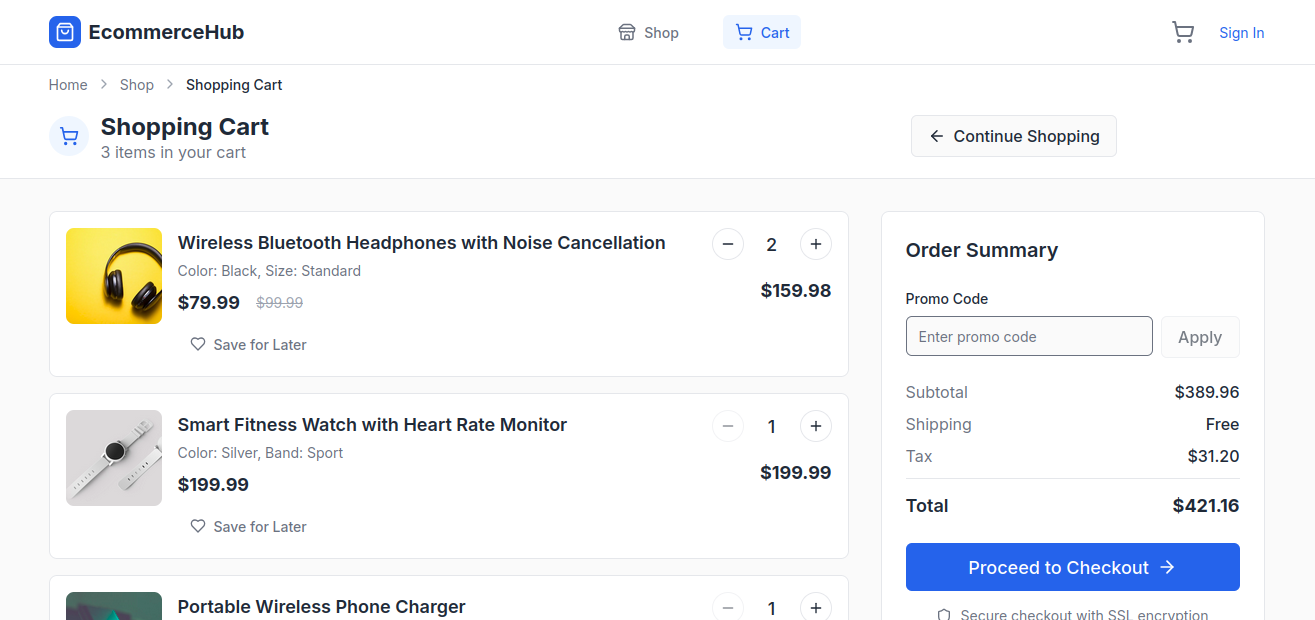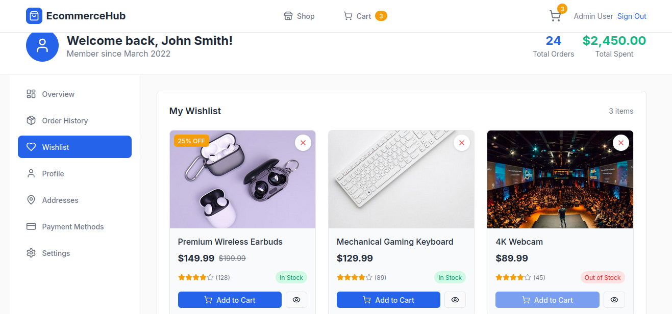 A modern and responsive eCommerce platform built with HTML, CSS, JavaScript, Tailwind, PHP, MySQL, Supabase, and hosted on Vercel.